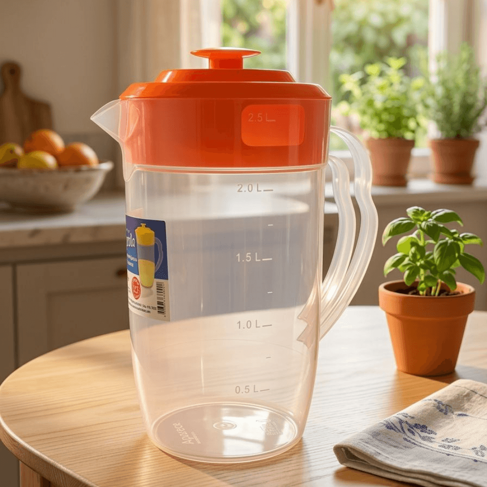 Eleva la funcionalidad de tu hogar con la Jarra Royal de 2,5 Litros, diseñada pensando en la comodidad y la eficiencia diaria. Ya sea para jugos frescos, aguas saborizadas o simplemente mantener agua fría en la nevera, esta jarra es el complemento indispensable para tu mesa.