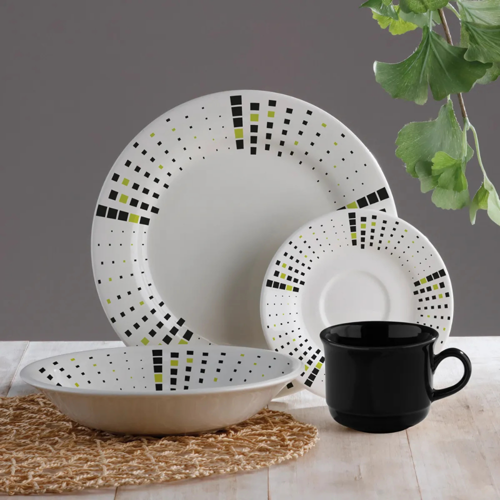 Disfruta de un set completo de vajilla diseñado para brindar funcionalidad, resistencia y estilo en tu mesa. Ideal para el uso diario, este producto cumple con altos estándares de calidad y seguridad para el contacto con alimentos.